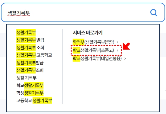 초등학교 생활기록부 인터넷 발급 (중학교 고등학교)