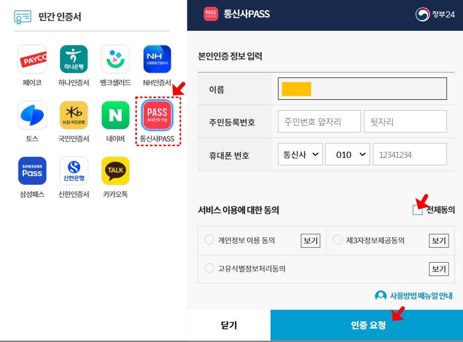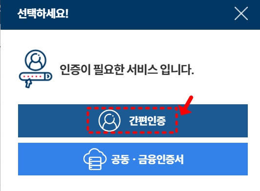 간편인증 or 공동 · 금융인증서로 인증 합니다. 만14세 이상만 가능합니다.!!